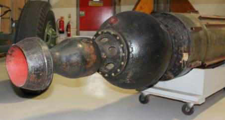 Brennkammer und der Triebwerksblock der Rheintochter R3.