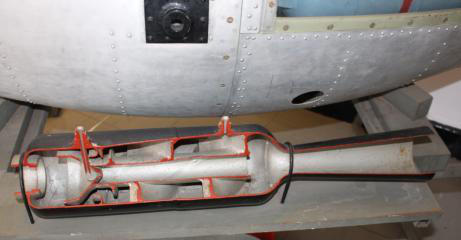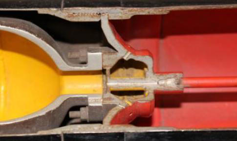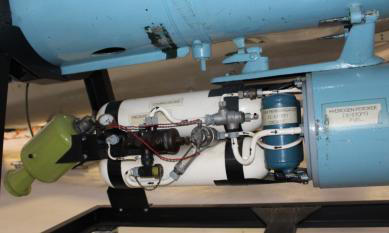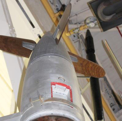 akustische Zünder. Der Rumpf ist aufgeschnitten,