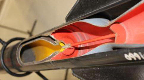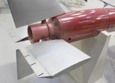 An der Luft-Luft-Rakete Kramer X-4 fehlt vorn der
