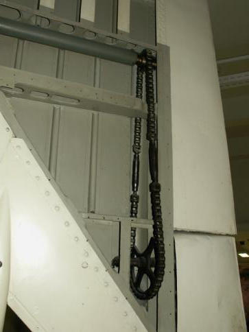 Hier sind zu sehen: Der Kettenantrieb des Luftruders (”Segel”