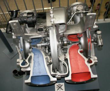 Oben: Die sehr schön geschnittene Turbopumpe des
