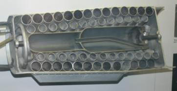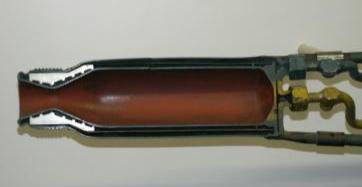 daneben die Aufbewahrungsröhre für die Prüf- und Verschuß-