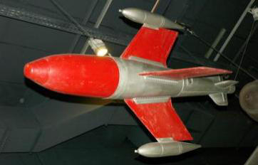 kompletten Flugkörper auch ein Schnittmodell zu sehen. Links