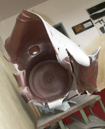 Der Mantel des Sprengkopfes ist geplatzt, der Antriebsteil ist