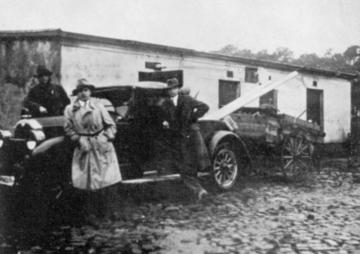 Das Bürogebäude ist hier noch in einem frühen Zustand zu sehen, also entweder kurz nach dem Bezug im Spätherbst 1930 oder im Frühjahr 1931. Im modischen Schick dieser Zeit stehen am Auto: Links hinten Rudolf Nebel, vorn Wernher von Braun und rechts vermutlich Kurt Heinisch.