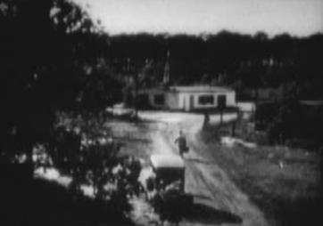Dieses Standbild aus einem Video zeigt die Zufahrt zum Bürogebäude etwa im Sommer 1931. Auf der Skizze oben ist dieser Weg ganz rechts gezeichnet.